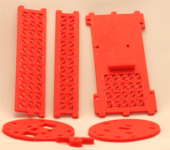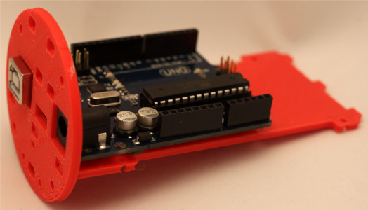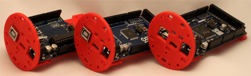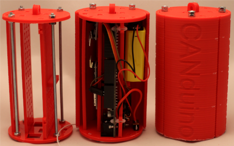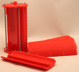 CANduino STRUCTURE is a set of plastic structure elements printed on a 3D printer and screws needed to assemble the structure. All others elements should be purchased separately. The structure consists of mounting platforms and external casing. Platforms allow to mount Arduino UNO, Arduino MEGA oraz Arduino DUE and sensor. These boards can be mounted using plastic pegs while sensors can be mounted with plastic clamps. Electrical connections between PCBs can be made via universal pin cables. There is dedicated place for 9V battery, telemetry transmitter and power switch. Assembled structure has holes for easy access to programming sockets.